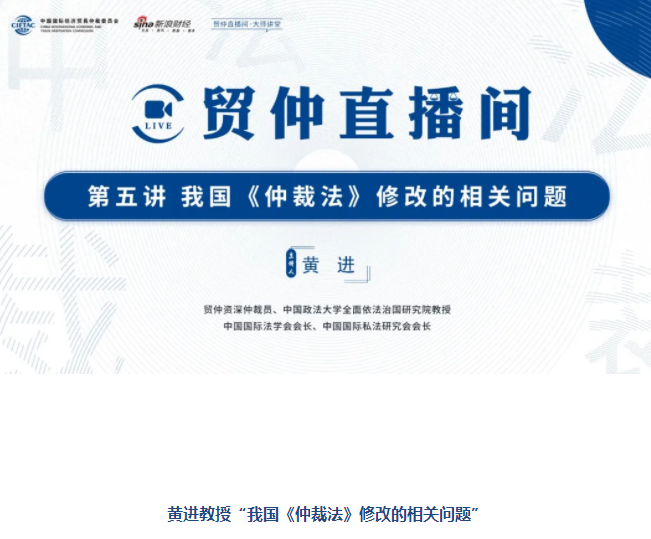 貿(mào)仲直播間-大師講堂系列課程第五講將于2021年6月10日(星期四)下午2時(shí),邀請(qǐng)貿(mào)仲資深仲裁員、中國(guó)政法大學(xué)全面依法治國(guó)研究院教授,中國(guó)國(guó)際法學(xué)會(huì)會(huì)長(zhǎng),中國(guó)國(guó)際私法研究會(huì)會(huì)長(zhǎng)黃進(jìn)教授,講解“我國(guó)仲裁法修改的相關(guān)問(wèn)題”。