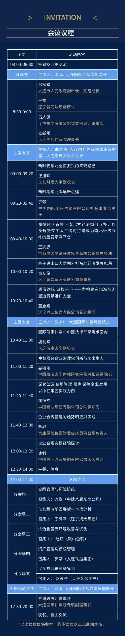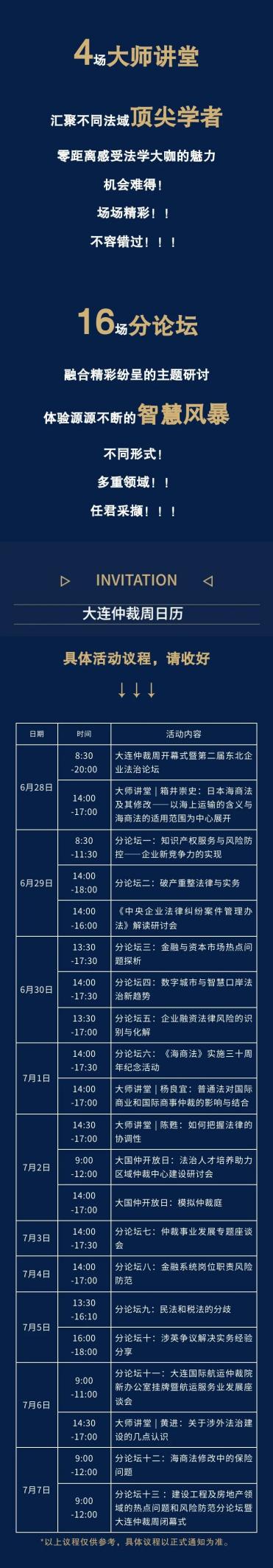 大連仲裁周是由大連國際仲裁院聯(lián)合遼寧省大連市人民政府國有資產監(jiān)督管理委員會、大連市工商業(yè)聯(lián)合會、中國國際貿易促進委員會大連市分會、大連市律師協(xié)會、中國政法大學、大連海事大學、東北財經大學等相關單位共同舉辦的以仲裁為主題的高端論壇和系列研討活動。