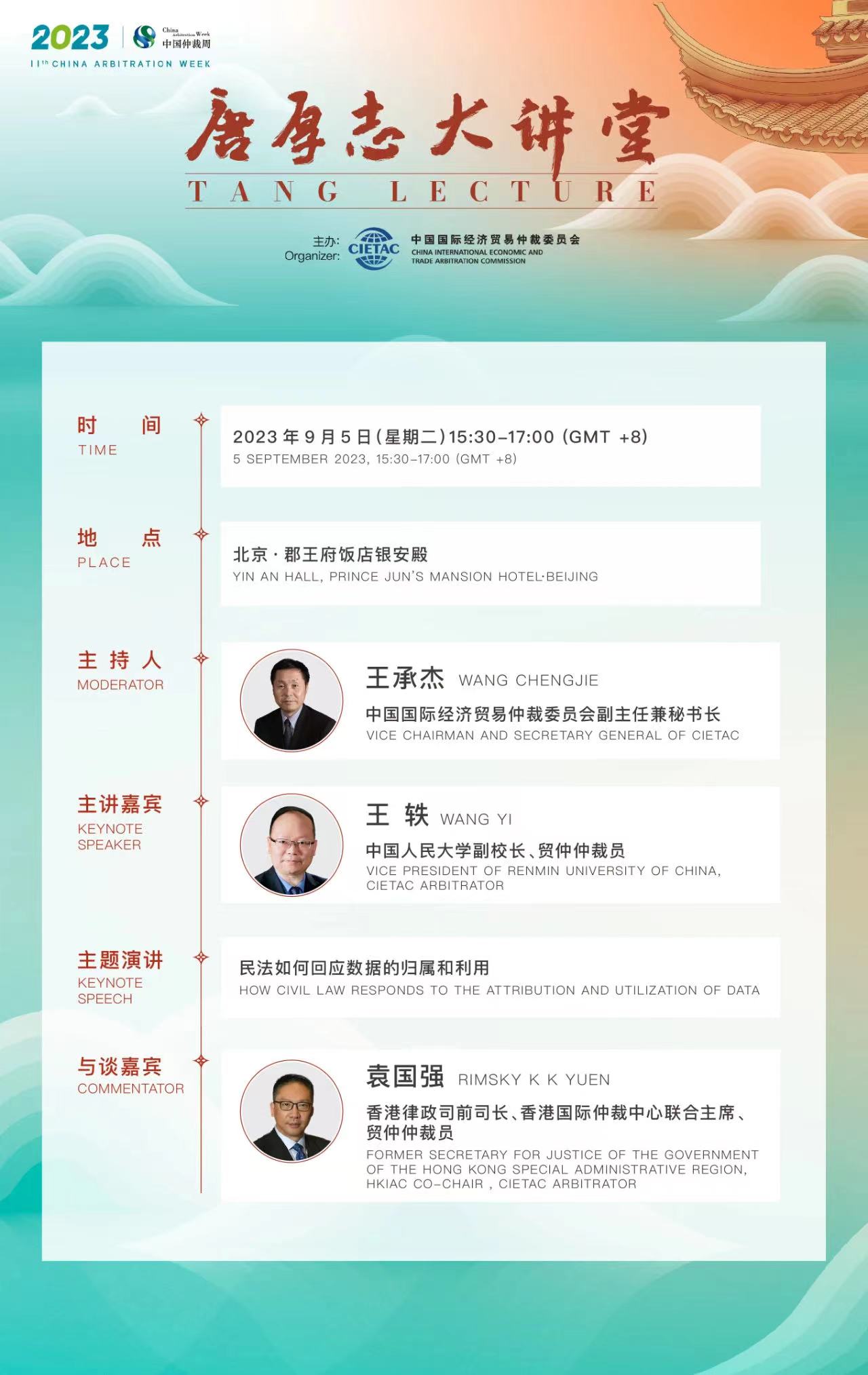 中國國際經(jīng)濟貿(mào)易仲裁委員會(CIETAC)主辦的第七屆“唐厚志大講堂(TANG Lecture)”將于2023年9月5日下午在北京舉行。