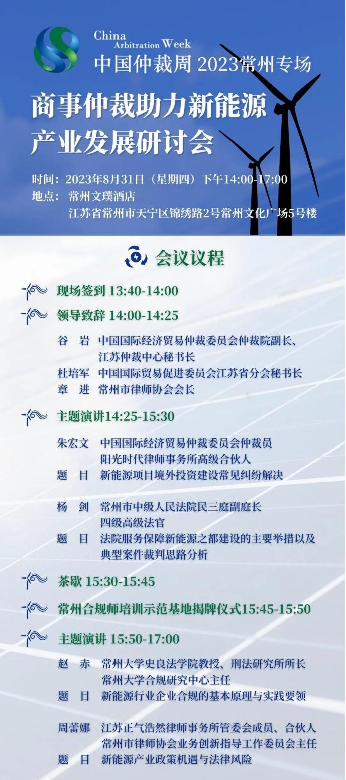 近年來,江蘇省常州市緊扣“國際化智造名城、長三角中軸樞紐”的城市定位,在新能源產(chǎn)業(yè)不斷發(fā)力,著力打造引領(lǐng)長三角,影響全國乃至全球的“新能源之都”。經(jīng)濟(jì)的蓬勃發(fā)展,產(chǎn)業(yè)的日益興旺,離不開良好的營商環(huán)境和制度化、規(guī)范化的法律保護(hù)措施。本次“中國仲裁周”常州專場活動——商事仲裁助力新能源產(chǎn)業(yè)發(fā)展研討會,將聚焦新能源產(chǎn)業(yè)熱點問題,幫助企業(yè)進(jìn)一步提升化解國內(nèi)外商事爭議的能力,推動建設(shè)公平、高效、法治的市場環(huán)境。