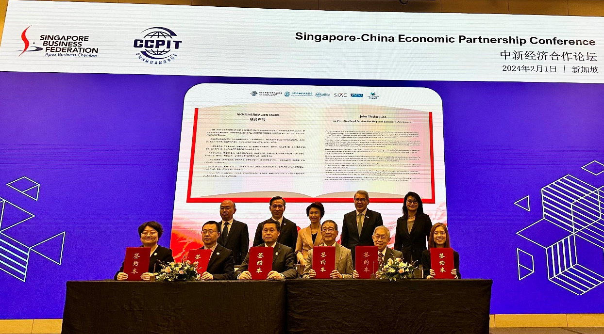 2月1日,在中國(guó)貿(mào)促會(huì)會(huì)長(zhǎng)任鴻斌率中國(guó)企業(yè)家代表團(tuán)訪(fǎng)問(wèn)新加坡期間,中國(guó)國(guó)際經(jīng)濟(jì)貿(mào)易仲裁委員會(huì)副主任兼秘書(shū)長(zhǎng)王承杰、中國(guó)海事仲裁委員會(huì)副主任李虎、中國(guó)貿(mào)促會(huì)調(diào)解中心執(zhí)行副主席蔡晨風(fēng)與新加坡國(guó)際仲裁中心首席執(zhí)行官林美恩、新加坡海事仲裁院主席趙錫燊、新加坡國(guó)際調(diào)解中心主席林長(zhǎng)仁在新加坡共同發(fā)布《為區(qū)域經(jīng)濟(jì)發(fā)展提供法律服務(wù)保障的聯(lián)合聲明》。中國(guó)貿(mào)促會(huì)會(huì)長(zhǎng)任鴻斌,新加坡貿(mào)易與工業(yè)部兼文化、社區(qū)及青年部政務(wù)部長(zhǎng)劉燕玲,中國(guó)駐新加坡大使館公使銜參贊宗長(zhǎng)青,新加坡工商聯(lián)合總會(huì)主席林明彥,新加坡律政部副常任秘書(shū)張伊靜出席并見(jiàn)證聲明發(fā)布。