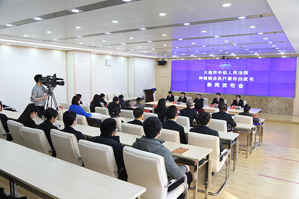 3月6日,遼寧省大連市中級人民法院召開仲裁裁決執(zhí)行案件白皮書新聞發(fā)布會,對外發(fā)布《大連市中級人民法院仲裁裁決執(zhí)行案件白皮書(2020年-2023年)》(以下簡稱《白皮書》)。大連中院黨組成員、副院長韓科軍出席會議,大連仲裁委員會相關(guān)負責同志應邀參會,部分人大代表、政協(xié)委員、媒體代表親臨現(xiàn)場,發(fā)布會通過大連中院微信視頻號全程直播。