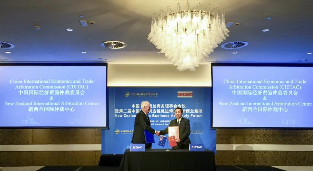 貿(mào)仲代表團(tuán)出席了由中國貿(mào)促會(huì)和新西蘭中國貿(mào)易協(xié)會(huì)共同主辦的中國-新西蘭商務(wù)理事會(huì)會(huì)議暨第二屆中國國際供應(yīng)鏈促進(jìn)博覽會(huì)新西蘭路演。任鴻斌會(huì)長出席活動(dòng)并致辭,新西蘭-中國貿(mào)易協(xié)會(huì)主席約翰·考克倫(John Cochrane)、新西蘭貿(mào)發(fā)局大中華區(qū)主任白安祖(Andrew White)、中國駐新西蘭大使王小龍、駐奧克蘭總領(lǐng)事陳世杰等出席活動(dòng),中新兩國工商界代表200余與會(huì)。會(huì)上,貿(mào)仲副主任兼秘書長王承杰與新西蘭國際仲裁中心主任約翰·格林(John Green)代表雙方簽訂了合作協(xié)議。該合作協(xié)議搭建了中新兩國仲裁機(jī)構(gòu)的交流平臺(tái),有利于通過共同努力增進(jìn)中方和新方企業(yè)在仲裁、爭議風(fēng)險(xiǎn)防范等方面的認(rèn)識(shí)與理解。