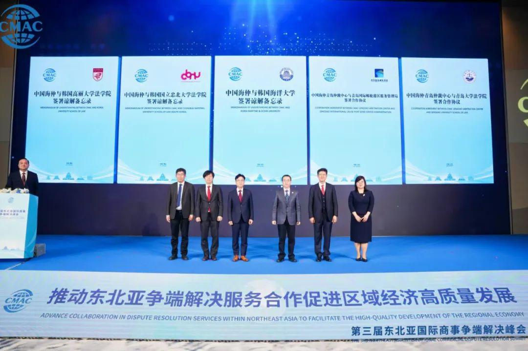開幕式后,在現(xiàn)場嘉賓見證下,中國海仲分別與韓國海事海洋大學、韓國高麗大學法學院、韓國國立忠北大學法學院簽署諒解備忘錄;中國海仲青島仲裁中心分別與青島國際郵輪港區(qū)服務管理局、青島大學法學院簽訂合作協(xié)議。成果發(fā)布環(huán)節(jié)由山東省貿(mào)促會會長孟向東主持。