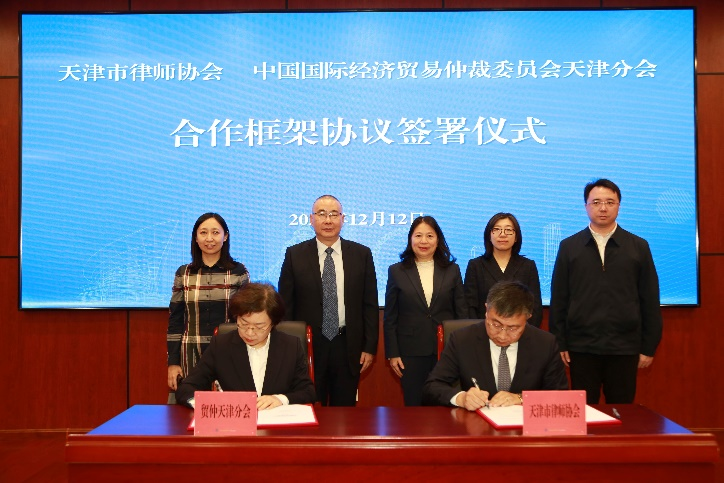 12月12日,中國國際經(jīng)濟(jì)貿(mào)易仲裁委員會(huì)(以下簡(jiǎn)稱“貿(mào)仲”)天津分會(huì)與天津市律師協(xié)會(huì)在天津簽署《合作框架協(xié)議》。合作協(xié)議簽署儀式由天津律協(xié)副會(huì)長(zhǎng)楊濤主持。貿(mào)仲黨委書記兼副秘書長(zhǎng)徐延波、天津市司法局副局長(zhǎng)袁紅麗出席活動(dòng),貿(mào)仲天津分會(huì)秘書長(zhǎng)周雯、天津律協(xié)會(huì)長(zhǎng)牛同栩代表雙方簽署《合作框架協(xié)議》。