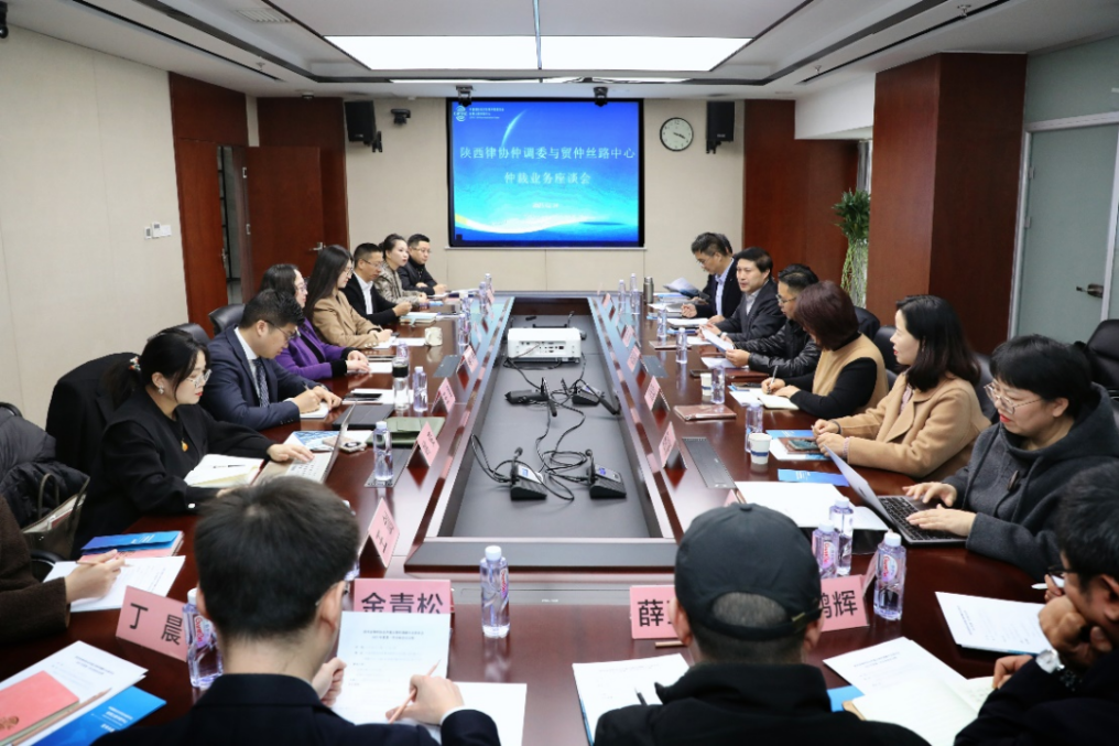 近日,陜西省律師協(xié)會仲裁及律師調解專業(yè)委員會(簡稱“陜西律協(xié)仲調委”)到訪中國國際經(jīng)濟貿易仲裁委員會絲綢之路仲裁中心(簡稱“貿仲絲路中心”)交流座談,貿仲絲路中心副秘書長蔣紅梅會見接待。陜西省律協(xié)副會長、仲調委會長閆玉新、主任劉彩玲、秘書長王毅等仲調委全體成員出席會議。