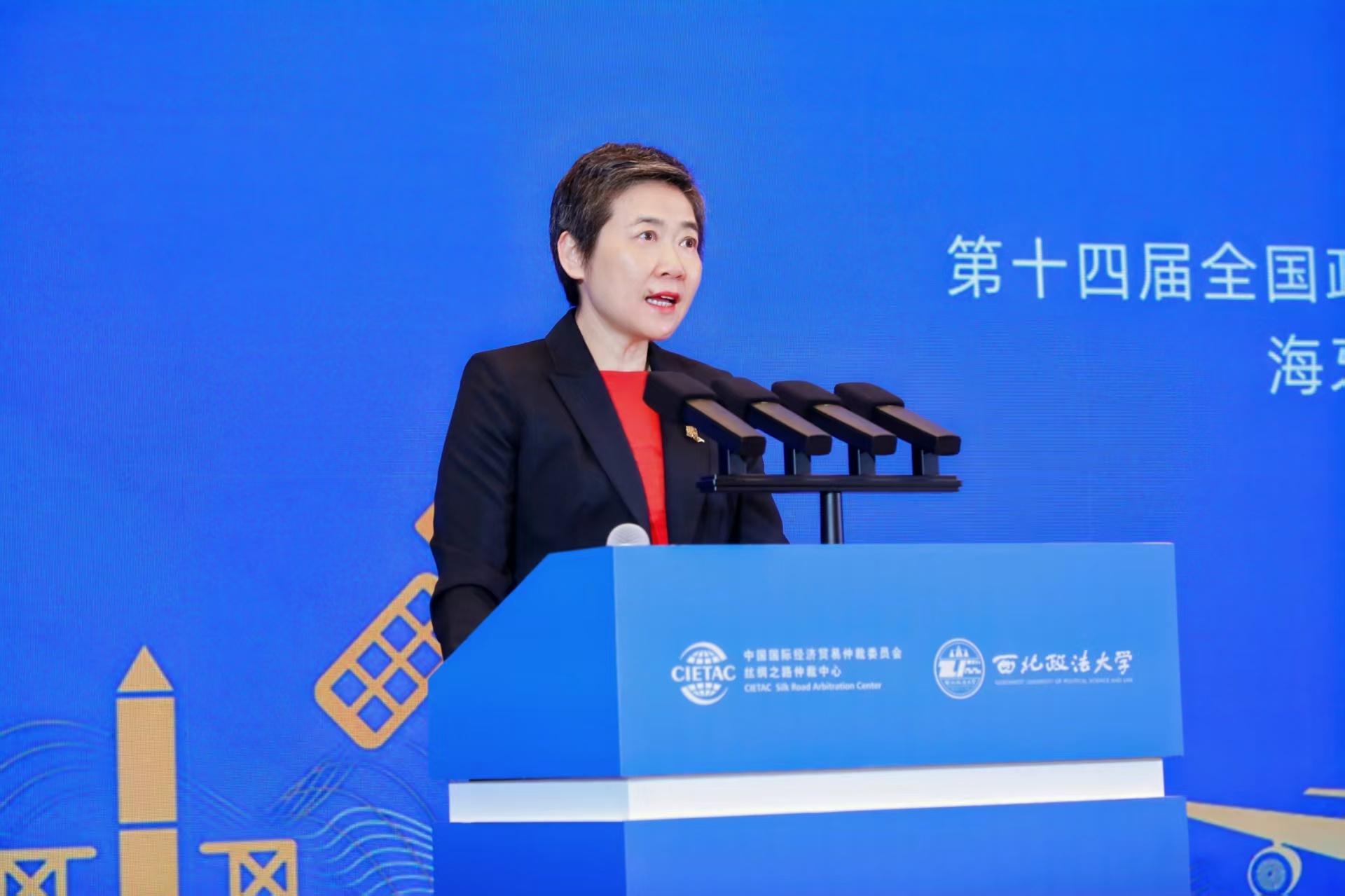 (貿仲絲綢之路仲裁中心副秘書長蔣紅梅主持開幕式)