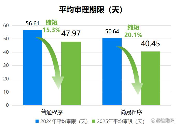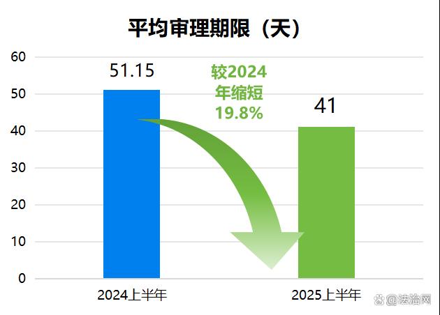 其中,普通程序案件平均審理期限為47.97天,較2024年上半年的56.61天縮短15.3%。