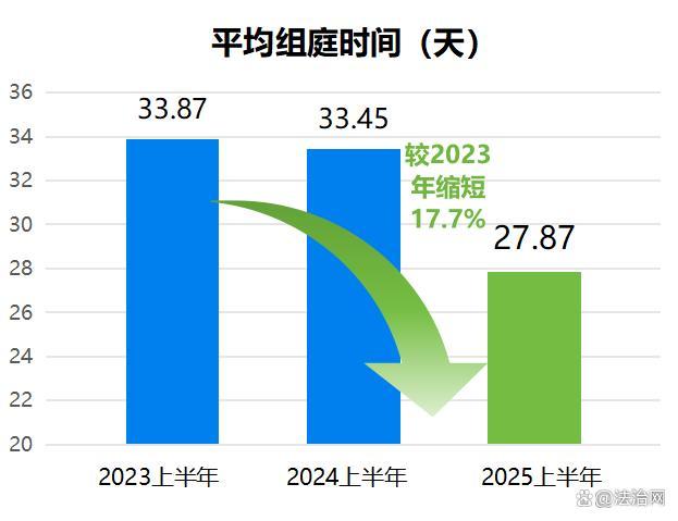 2025年上半年平均組庭時間壓縮至27.87天,較2024年上半年的33.45天縮短16.7%,較2023年上半年的33.87天縮短17.7%。通過組庭耗時的持續(xù)壓縮,案件進入實體審理環(huán)節(jié)的效率大幅提升,為案件高效審理奠定了堅實基礎(chǔ)。