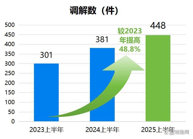 2025年上半年,以調(diào)解方式結(jié)案448件,較2024年上半年的381件提高17.6%,較2023年上半年的301件增幅高達48.8%,數(shù)量實現(xiàn)跨越式增長。調(diào)解案件數(shù)量的顯著增加,有力促進了矛盾糾紛的實質(zhì)性化解,提升了貴仲的仲裁公信力和群眾滿意度。
