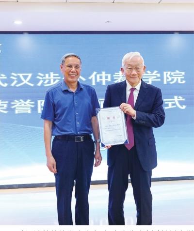 6月10日,武漢涉外仲裁學院掛牌成立,國際仲裁權威專家、香港國際仲裁中心名譽主席楊良宜先生接過聘書,成為名譽院長。