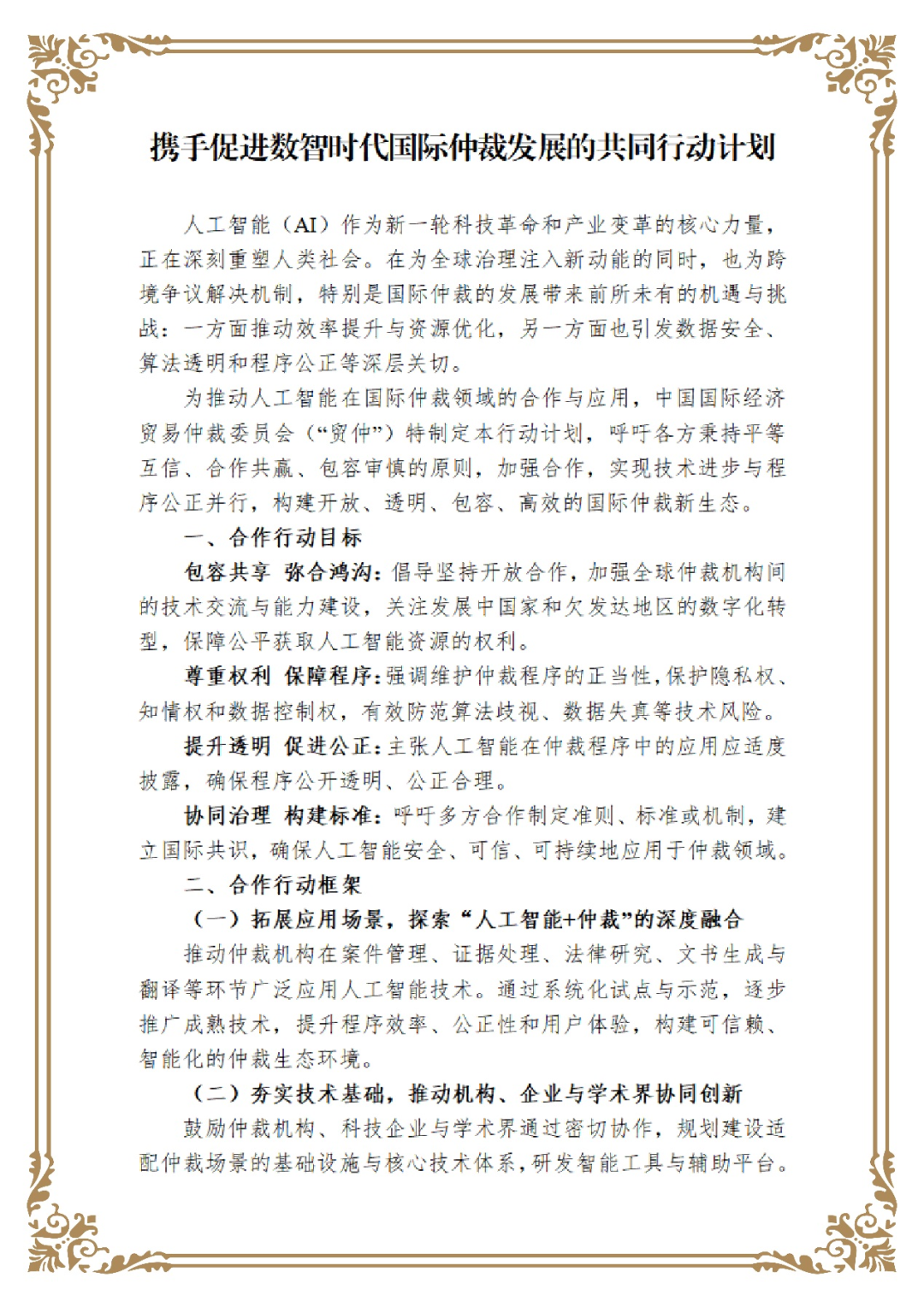 附:《攜手促進(jìn)數(shù)智時代國際仲裁發(fā)展的共同行動計(jì)劃》中英文文本