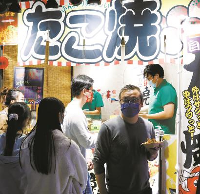 錦江樂(lè)園夜市中,顧客購(gòu)買章魚小丸子。 均本報(bào)記者 李茂君 攝