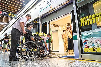 上海地鐵今年內(nèi)將在全網(wǎng)各站配置“無(wú)障礙渡板”,輔助使用輪椅及推嬰兒車的乘客上下列車。