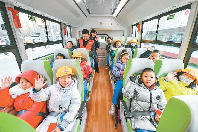 這16名小乘客是北大附中石景山學(xué)校一年級(jí)學(xué)生。“學(xué)校西黃村新址還未建成,目前一年級(jí)在金頂街小學(xué)借址辦學(xué)。因此,對(duì)于家住西黃村附近的部分學(xué)生來(lái)說(shuō),上下學(xué)接送不太方便?!备毙iL(zhǎng)張結(jié)實(shí)介紹,考慮到“小豆包”年紀(jì)小,通學(xué)車上除了公交乘務(wù)員,每天還有教師志愿者全程跟車。