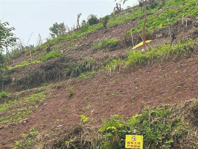 11月4日,在大渡口區(qū)九宮廟金地格林春岸小區(qū)二期,記者看到,對(duì)面約幾百米長(zhǎng)的山坡,多數(shù)被開(kāi)墾,種上了當(dāng)季蔬菜。城市一隅,種菜帶來(lái)的土地裸露、原生植被開(kāi)挖、白色垃圾、異味等問(wèn)題,多少有些煞風(fēng)景。坡地上有提示牌寫(xiě)著“國(guó)有土地,嚴(yán)禁耕種”字樣。有種菜的居民告訴記者,雖然看到了相應(yīng)提示,但他認(rèn)為與其讓土地荒廢,不如利用起來(lái)。