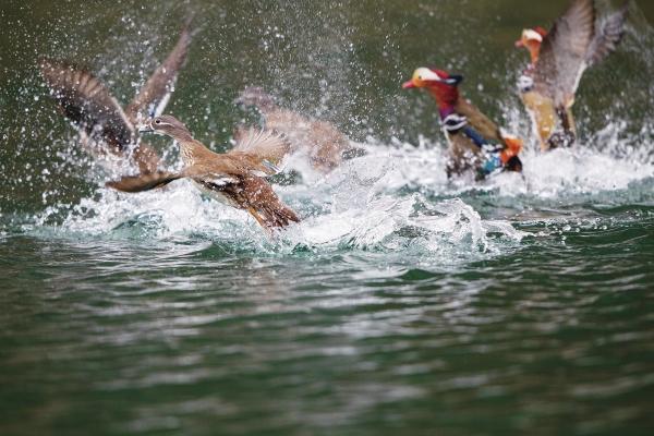 2月9日,桃源縣王家灣水庫,鴛鴦戲水,水花四濺。鴛鴦在湖南是冬候鳥,棲息于山地的河谷、溪流,屬國家二級保護動物。