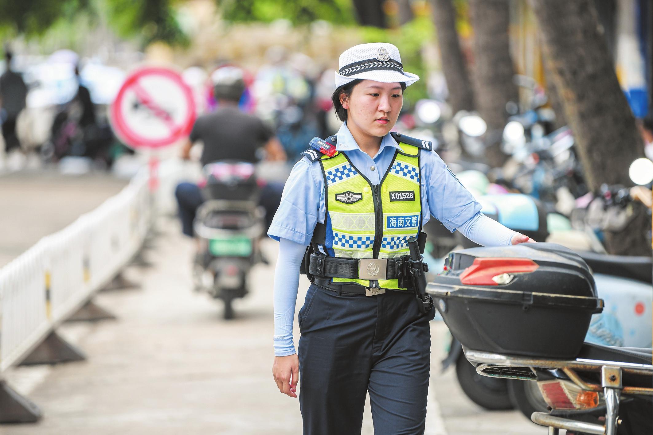 6月8日,在海南中學(xué)高中部考點(diǎn),交警正在檢查考點(diǎn)附近的電動(dòng)自行車警報(bào),為英語考試營造安靜的環(huán)境。記者 蘇弼坤 攝