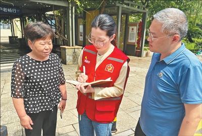 浙江省寧波市鎮(zhèn)海區(qū)莊市街道網格員劉紅(中)到社區(qū)了解民情。王婧 攝