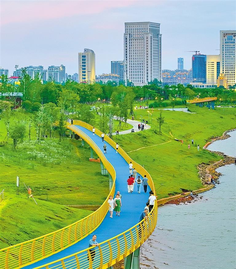 6月14日,江西省南昌市紅谷灘區(qū)贛江市民公園,漫游長(zhǎng)廊、休閑步道、兒童樂園等功能型、游樂類設(shè)施成為市民健身鍛煉的好去處。近年來,當(dāng)?shù)胤e極建設(shè)城市綠色通道和生態(tài)景觀長(zhǎng)廊,并通過水系治理、岸線整治、濕地修復(fù)、增添設(shè)施等措施,打造風(fēng)景秀麗、功能多樣的主題公園,讓群眾樂享“15分鐘健身圈”。朱海鵬攝(中經(jīng)視覺)