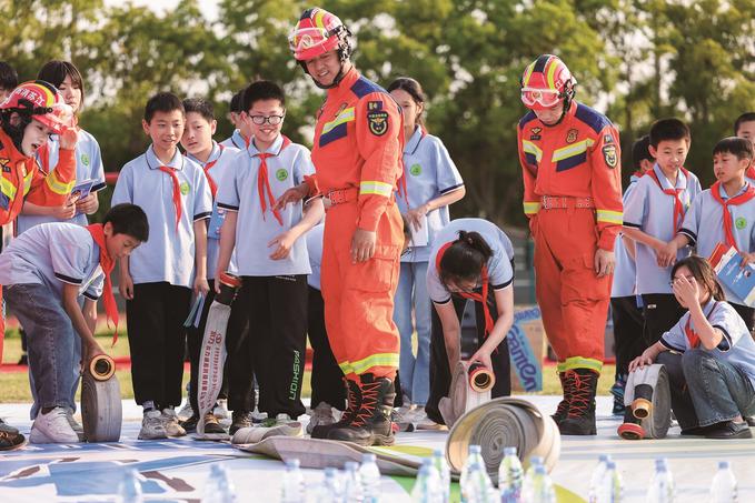 近日,鹽城市鹽都區(qū)消防救援大隊(duì)開展消防宣傳進(jìn)校園活動(dòng)。活動(dòng)現(xiàn)場內(nèi)容豐富、形式多樣,為北龍港小學(xué)廣大師生和家長帶來了一場別開生面且具有教育意義的消防安全知識(shí)盛宴。 王小康 攝