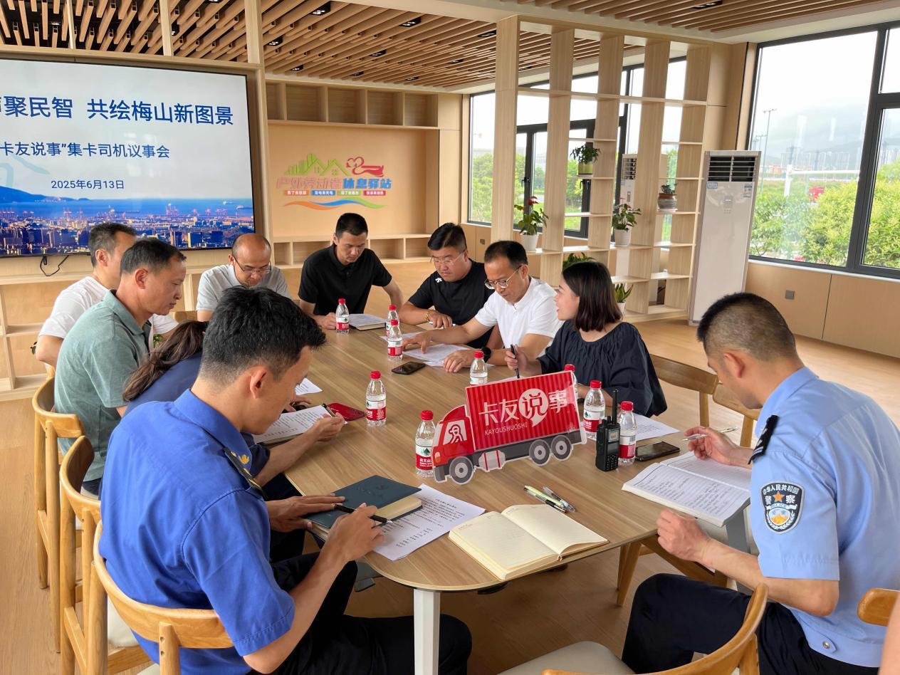 隨著浙江省寧波市舟山港六橫公路大橋一期通車(chē),梅山保稅區(qū)集卡服務(wù)中心臨時(shí)停車(chē)場(chǎng)也隨之投入試運(yùn)行。6月13日上午,一場(chǎng)熱鬧的集卡司機(jī)議事會(huì)在梅山金創(chuàng)社區(qū)召開(kāi),公安、綜合行政執(zhí)法等部門(mén)與社區(qū)合力搭建溝通平臺(tái),傾聽(tīng)集卡司機(jī)心聲,匯聚多方智慧,解決集卡司機(jī)難題。
