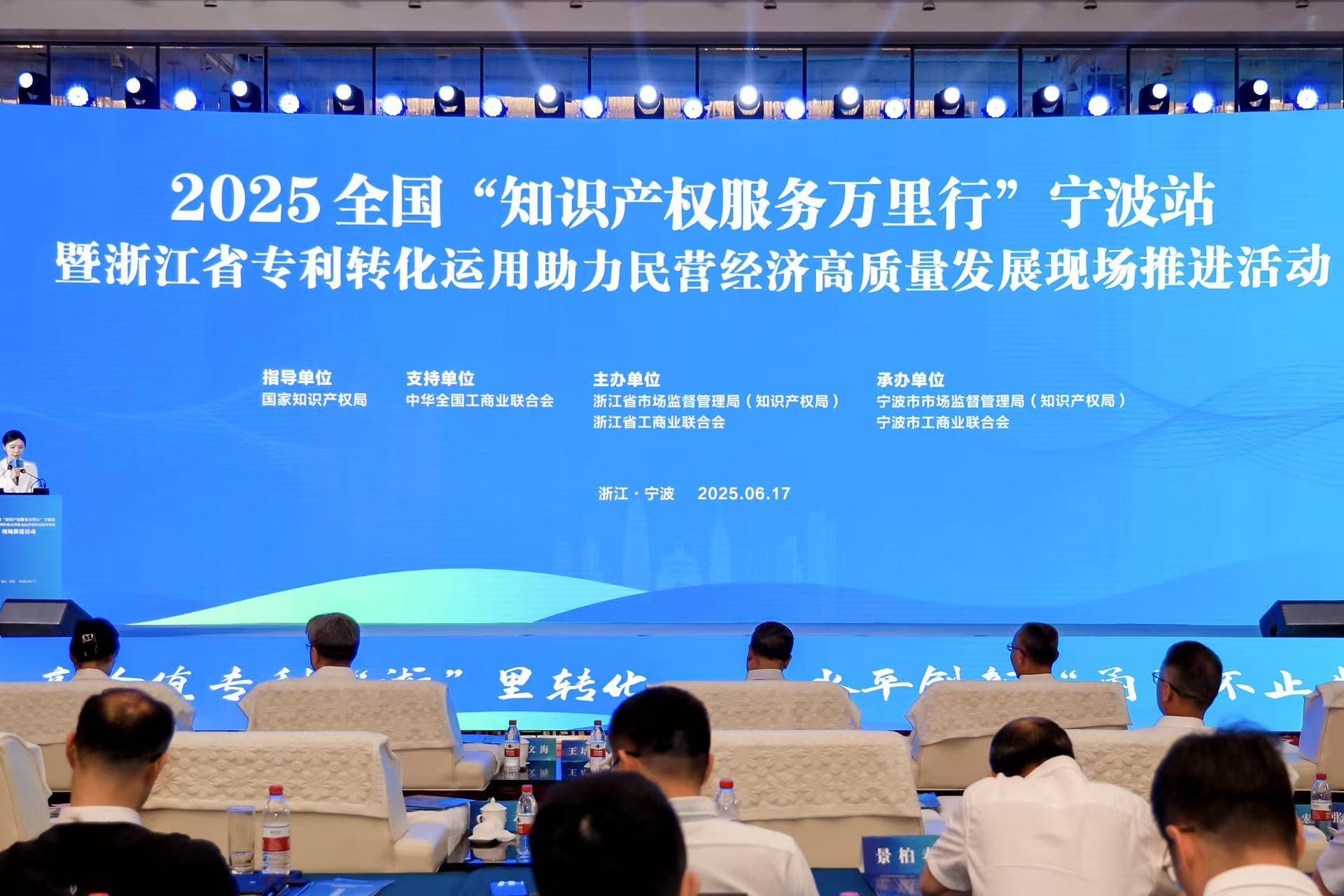 6月17日,2025全國“知識產(chǎn)權(quán)服務(wù)萬里行”寧波站暨浙江省專利轉(zhuǎn)化運用助力民營經(jīng)濟(jì)高質(zhì)量發(fā)展現(xiàn)場推進(jìn)活動在寧波市舉行。