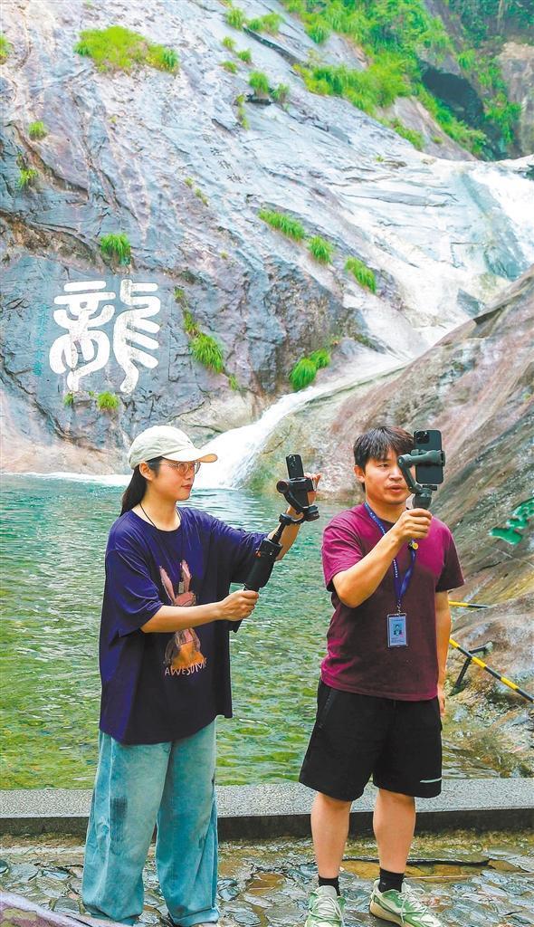 6月9日,江西省廬山市廬山秀峰景區(qū),自媒體從業(yè)者用網(wǎng)絡(luò)直播的方式為游客介紹景區(qū)。韓俊烜攝(中經(jīng)視覺(jué))
