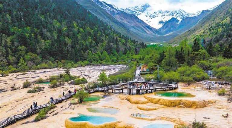 6月10日,四川省阿壩州松潘縣黃龍風(fēng)景區(qū),游客在觀賞鈣華地貌景觀。黃勝林?jǐn)z(中經(jīng)視覺(jué))
