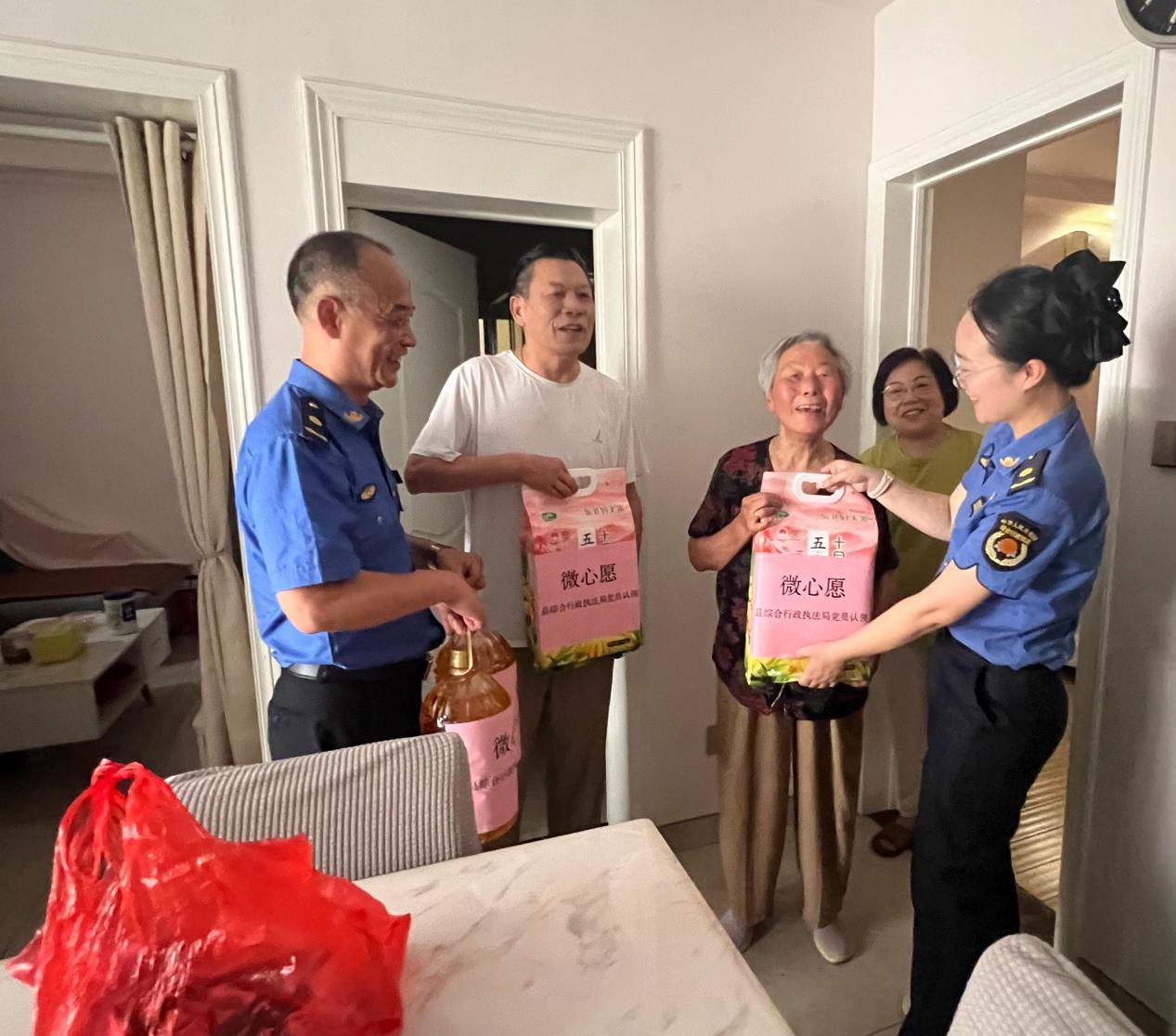 在建黨104周年來臨之際,浙江省寧波市象山縣綜合行政執(zhí)法局機關(guān)黨總支組織黨員干部于6月30日上午,深入丹東、丹西街道多個小區(qū)和村莊,叩開5戶困難群眾的家門,開展“微心愿”物品送上門活動。