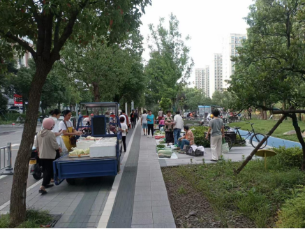 流動攤販的叫賣聲、私家車的鳴笛聲、行人的嘈雜聲……每天早上,浙江省寧波市鎮(zhèn)海區(qū)御水路九龍匯菜場對面休閑公園的人行道便被一些擺攤賣蔬菜的攤販占據(jù),原本寬敞的休閑公園的人行道被攤位擠占得只剩狹窄通道,清晨來公園鍛煉的人行走極為不便,人車混行更是險象環(huán)生。