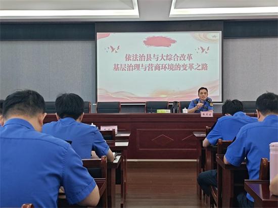 7月4日下午,浙江省寧波市象山縣綜合行政執(zhí)法局組織了一場主題鮮明、內(nèi)涵深刻的專題黨課。象山縣綜合行政執(zhí)法局黨組成員張靈啟以“依法治縣與大綜合行政執(zhí)法改革”為核心,深度融合黨風(fēng)廉政建設(shè)要求,為全體黨員干部上了一堂兼具理論高度與實(shí)踐深度的黨課,強(qiáng)調(diào)以法治思維引領(lǐng)改革、以清廉建設(shè)保障改革,為優(yōu)化營商環(huán)境、提升縣域治理現(xiàn)代化水平注入強(qiáng)勁動(dòng)能。