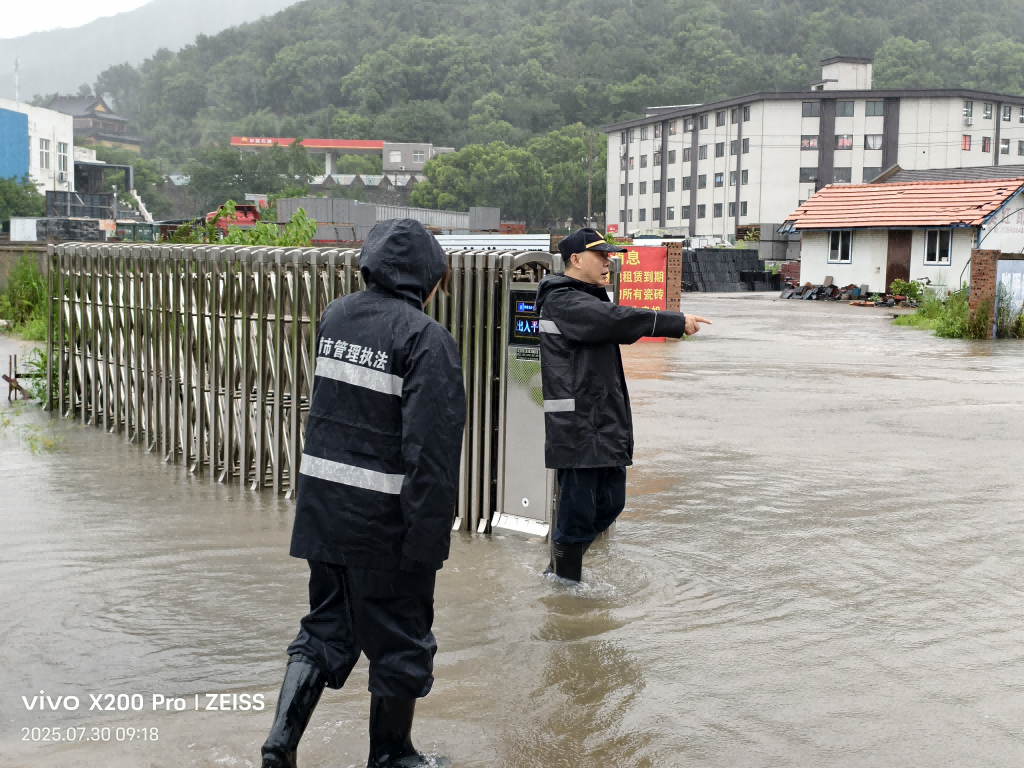聞“風(fēng)”而動(dòng),全方位啟動(dòng)應(yīng)急響應(yīng)。預(yù)警發(fā)布后,各地綜合執(zhí)法隊(duì)立即進(jìn)入應(yīng)急備戰(zhàn)狀態(tài),以“黨員先鋒崗”為引領(lǐng),實(shí)行24小時(shí)應(yīng)急值守。各地執(zhí)法隊(duì)對(duì)轄區(qū)內(nèi)一級(jí)水庫及易澇區(qū)域開展地毯式巡查,確保水利設(shè)施安全無虞;裝填沙袋300余個(gè),在低洼商鋪門前構(gòu)筑防水屏障,有效防止雨水倒灌;處置倒伏樹木、遺失車牌等道路險(xiǎn)情20起;加密對(duì)易澇點(diǎn)位的巡查頻次,重點(diǎn)保障主次干道、商圈、菜場等人員密集區(qū)域道路暢通。
