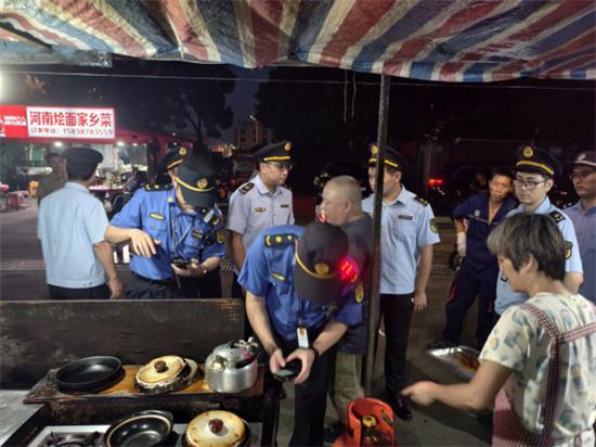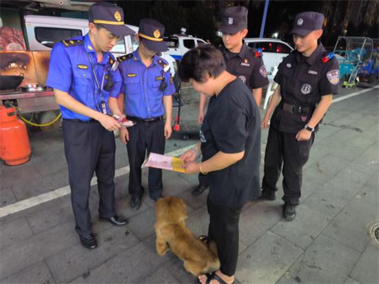 此次專項(xiàng)檢查重點(diǎn)覆蓋轄區(qū)內(nèi)的餐飲店鋪、夜宵城及周邊小區(qū),執(zhí)法人員圍繞商戶燃?xì)饧霸罹叩囊?guī)范使用、餐飲環(huán)境衛(wèi)生、食品安全、消防安全以及居民文明養(yǎng)犬等方面,進(jìn)行了全面細(xì)致的排查。在澥浦夜宵城檢查時(shí),發(fā)現(xiàn)部分商戶存在燃?xì)馄窟^期的現(xiàn)象。對此,執(zhí)法人員一方面指導(dǎo)商戶整改違規(guī)用氣行為,同步開展燃?xì)獍踩褂眯麄鳎涣硪环矫娼Y(jié)合商戶經(jīng)營需求,第一時(shí)間聯(lián)系美氣多公司到場,協(xié)助商戶現(xiàn)場辦理開戶,并指導(dǎo)其通過官方電話、企業(yè)微信公眾號等正規(guī)渠道訂氣,從源頭上杜絕“黑氣”流通。這種集安全宣教、整改指導(dǎo)與現(xiàn)場服務(wù)于一體的方式,讓商戶切實(shí)感受到執(zhí)法的溫度,也提升了對服務(wù)式執(zhí)法的認(rèn)可。同時(shí),執(zhí)法人員對小區(qū)周邊進(jìn)行犬類集中整治,因夏季遛狗居民較多,執(zhí)法人員提醒養(yǎng)犬居民文明養(yǎng)犬,謹(jǐn)防犬類傷人事件發(fā)生。