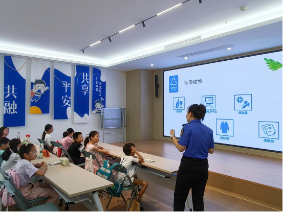 普法活動以孩子們喜聞樂見的形式展開,現(xiàn)場播放了動畫短片《我們的垃圾分類》,以淺顯易懂、活潑有趣的方式,向孩子們普及垃圾分類相關(guān)的基礎(chǔ)知識。隨后,執(zhí)法人員通過游戲互動、知識搶答等方式,為孩子們生動講解日常生活中區(qū)分可回收物、有害垃圾、廚余垃圾與其他垃圾的科學(xué)方法。