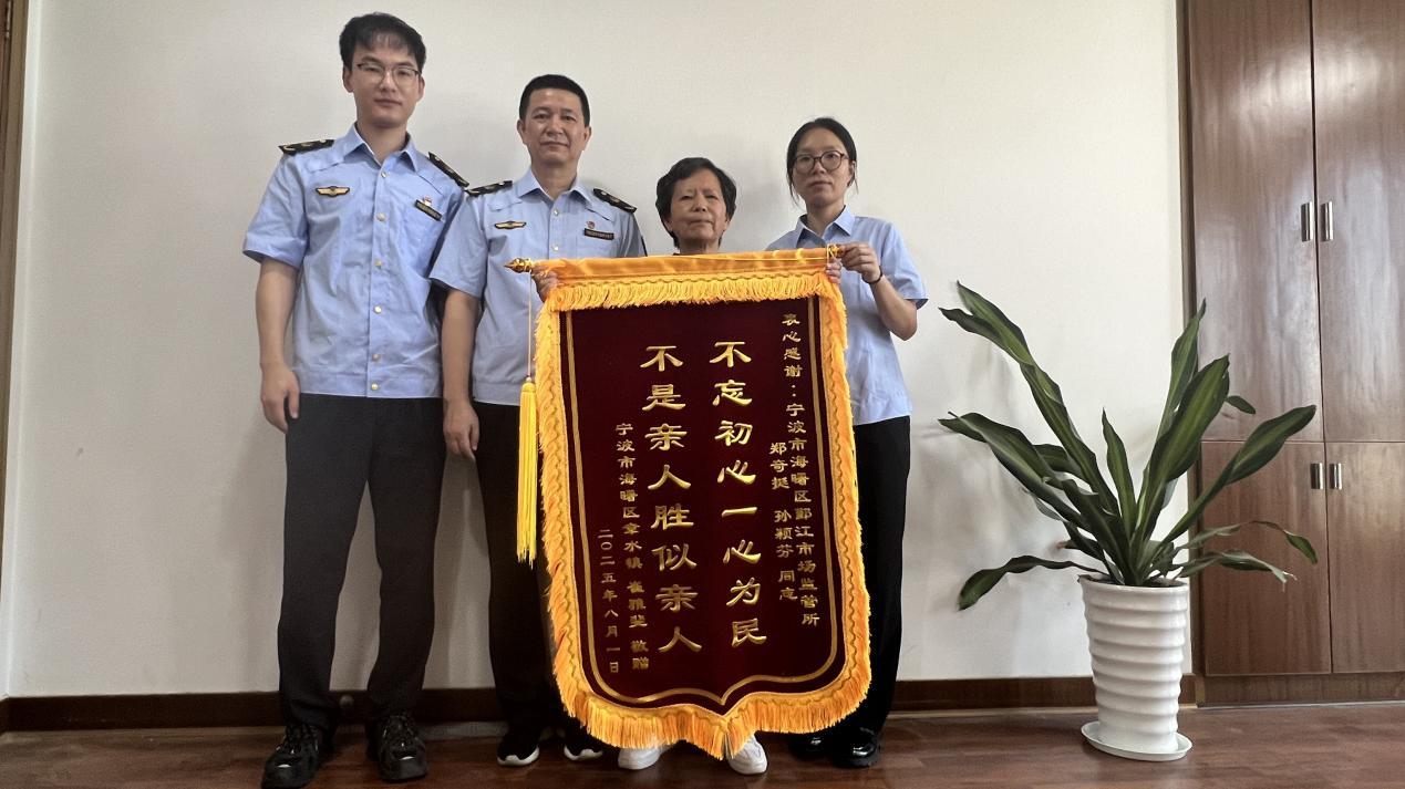 近日,消費(fèi)者崔女士將一面寫著“不忘初心一心為民 不是親人勝似親人”的錦旗送到浙江省寧波市海曙區(qū)鄞江市場(chǎng)監(jiān)管所,字里行間滿是對(duì)工作人員高效服務(wù)的肯定與感激,為炎炎夏日里的政務(wù)服務(wù)窗口帶來(lái)了一陣沁人心脾的清風(fēng)。