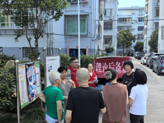 “叔叔阿姨們,電動自行車要停放在人行道劃線區(qū)域內(nèi);生活垃圾應(yīng)當(dāng)分類投放到對應(yīng)的垃圾桶,不得隨意拋灑、傾倒;飲用水源保護(hù)區(qū)內(nèi)禁止垂釣、游泳……”8月24日晚6時,浙江省寧波市象山縣綜合行政執(zhí)法局“綜聲代”宣講小分隊的“理論后備箱”流動服務(wù)車駛?cè)氲|街道新華小區(qū)。執(zhí)法人員通過政策宣講、發(fā)放手冊等方式,向居民普及十大常見違法行為及嚴(yán)格規(guī)范涉企行政檢查新規(guī)。