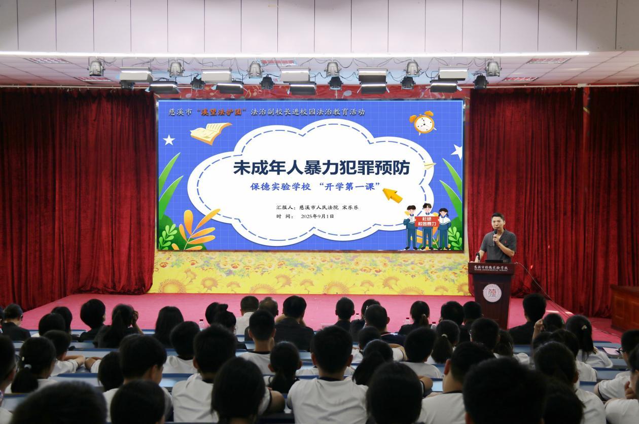 活動當天,保德實驗學(xué)校的法治副校長宋樂樂以《未成年人暴力犯罪預(yù)防》為主題,向現(xiàn)場師生講授新學(xué)期“法治第一課”。他結(jié)合自身審判實踐中遇到的真實案例,用通俗易懂的語言剖析了暴力行為的法律界限與嚴重后果,引導(dǎo)學(xué)生思考如何辨別和應(yīng)對校園欺凌、網(wǎng)絡(luò)暴力等行為。