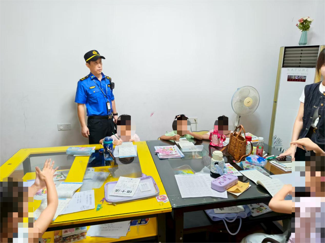 當(dāng)日,執(zhí)法人員在岳林街道力邦廣場檢查時,發(fā)現(xiàn)原本登記主營“中學(xué)生校外托管服務(wù)”的某機(jī)構(gòu)教室里,5名幼兒正跟著老師學(xué)習(xí)小學(xué)數(shù)學(xué)課程。經(jīng)查,該機(jī)構(gòu)不僅未取得辦學(xué)許可證,授課教師也無法提供教師資格證,屬于典型的“無證辦學(xué)+無資質(zhì)教學(xué)”雙重違規(guī)。執(zhí)法人員當(dāng)即向機(jī)構(gòu)負(fù)責(zé)人下發(fā)《停業(yè)整改通知書》,要求其立即停止所有違規(guī)培訓(xùn)活動。