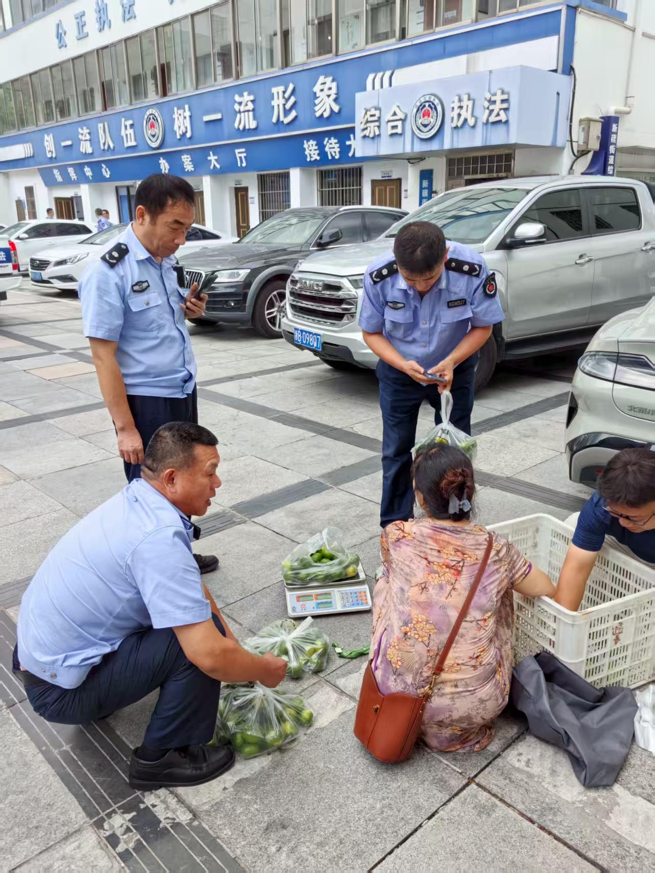 聽著怑女士的講述,隊(duì)員們心里泛起了波瀾??紤]到老人的實(shí)際困難,大家決定在依法處罰后,主動(dòng)幫她解決銷路難題。“怑大姐,您別著急,我們幫您想想辦法?!眻?zhí)法人員李海闊當(dāng)即拍下橘子的照片,在片區(qū)群里發(fā)起“助農(nóng)接龍”,詳細(xì)說明了怑女士的情況、橘子的價(jià)格,以及老人的不易。消息一經(jīng)發(fā)出,立刻得到大伙的積極響應(yīng)。“我要3份”“給我留10塊錢的”“幫我?guī)?斤”……隨后,隊(duì)員們還特意幫怑女士聯(lián)系了附近社區(qū)的便民疏導(dǎo)點(diǎn),告知她辦妥手續(xù)后可在規(guī)范區(qū)域售賣,既不影響交通,也能更安心經(jīng)營。