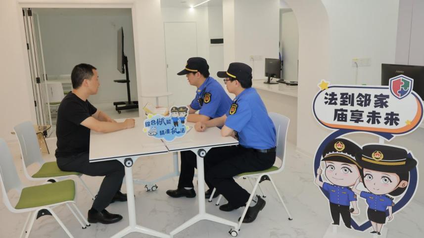 在鐘公廟街道,綜合執(zhí)法隊為商戶打造“10分鐘服務(wù)圈”。3家“法到鄰家”基層執(zhí)法工作室在繁鬧的萬達(dá)商圈、恬靜的咖啡館等街頭巷尾處,將服務(wù)觸角延伸至“抬腳一步路”。商戶可以通過“益企服”平臺預(yù)約執(zhí)法人員上門排查隱患,商戶的查漏補(bǔ)缺變得“像點(diǎn)外賣一樣快捷”?!胺ㄖ紊除垺鄙希虘艨膳c執(zhí)法人員、駐點(diǎn)律師面對面,對經(jīng)營中遇到的難題暢所欲言,將經(jīng)營中的“煩心事”變成“好方法”。政企之間的交流不再只有冷冰冰的執(zhí)法條款,更多是街坊鄰里間“抬腳即達(dá)”的便利和溫暖。