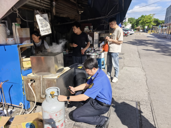 在整治過程中執(zhí)法人員對(duì)商鋪的燃?xì)馄康陌踩褂眠M(jìn)行詳細(xì)檢查,包括訂氣溯源,瓶口閥門,氣密安全等。執(zhí)法人員提醒商戶規(guī)范擺放物品,告知商鋪經(jīng)營(yíng)線內(nèi)只能放置經(jīng)營(yíng)物品,其他雜物不允許擺放。同時(shí),對(duì)商家燃?xì)?、灶具的安全使用,餐飲環(huán)境衛(wèi)生、食品安全等進(jìn)行了全方位的細(xì)致檢查。為學(xué)生營(yíng)造一個(gè)健康、安全的飲食環(huán)境。