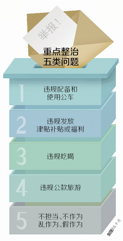 此次專項整治從“小切口”入手,聚焦違規(guī)配備和使用公車,違規(guī)發(fā)放津貼補(bǔ)貼或福利,違規(guī)吃喝,違規(guī)公款旅游,以及不擔(dān)當(dāng)、不作為、亂作為、假作為等5類我市國有企業(yè)易發(fā)多發(fā)的共性問題。各國企將有針對性地開展“一企一清單”專項整治,根據(jù)本集團(tuán)重點問題清單,對以上5類問題分別挑選最典型的表現(xiàn)作為整治切入點。