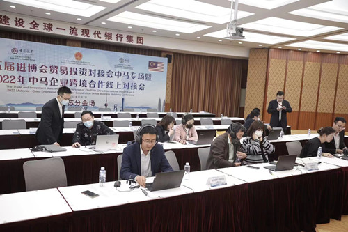 為進(jìn)一步豐富第五屆進(jìn)博會(huì)對(duì)接活動(dòng)主題,促進(jìn)中國(guó)和馬來(lái)西亞兩國(guó)間的經(jīng)貿(mào)投資往來(lái),中國(guó)銀行與中國(guó)駐馬來(lái)西亞大使館、馬來(lái)西亞中華總商會(huì)共同舉辦了“第五屆進(jìn)博會(huì)貿(mào)易投資對(duì)接會(huì)中馬專場(chǎng)暨2022年中馬企業(yè)跨境撮合線上對(duì)接會(huì)”(以下簡(jiǎn)稱“中馬對(duì)接會(huì)”),邀請(qǐng)客戶依托“惠如愿·中銀e企贏”平臺(tái)開展線上視頻洽談。江蘇中行積極落實(shí)總行工作部署,設(shè)立了南京、淮安兩處分會(huì)場(chǎng),邀約了近30家中小企業(yè)客戶參加“中馬對(duì)接會(huì)”。