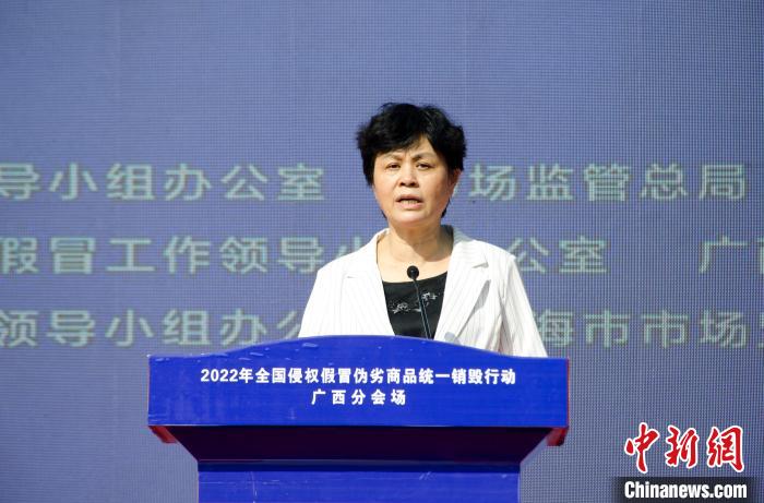 全國打擊侵權(quán)假冒工作領(lǐng)導(dǎo)小組辦公室主任、國家市場監(jiān)管總局副局長甘霖在北海參加銷毀活動并講話