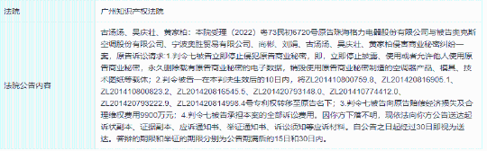 格力電器訴求判令被告將ZL201410800759.8、ZL201420816905.1、ZL201410800823.2、ZL201420816545.5、ZL201420793148.0、ZL201410774412.0、ZL201420793222.9、ZL201420814998.4號(hào)專利權(quán)轉(zhuǎn)移至原告名下;并且賠償原告9900萬元。