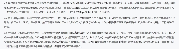 記者發(fā)現(xiàn),在視覺中國的個人供稿社區(qū)——500px攝影社區(qū)中,有這樣一條免責聲明:用戶的作品均由用戶自行上傳,500px攝影社區(qū)沒有能力亦無責任審查作品是否存在侵權等情節(jié),用戶上傳的作品涉及的侵權等法律責任全部由上傳用戶本人承擔。用戶同意,如因下載使用其他用戶上傳的作品發(fā)生侵權等法律糾紛,500px攝影社區(qū)不承擔任何責任,用戶不向500px攝影社區(qū)提出任何索賠。