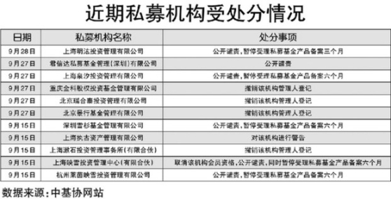 據(jù)《經(jīng)濟(jì)參考報(bào)》記者統(tǒng)計(jì),今年8月初至9月底,中基協(xié)網(wǎng)站公布針對(duì)私募機(jī)構(gòu)的紀(jì)律處分決定書38張、針對(duì)相關(guān)個(gè)人的紀(jì)律處分決定書88張,合計(jì)超120張。業(yè)內(nèi)人士分析認(rèn)為,針對(duì)私募行業(yè)相關(guān)問題的處分力度較之前明顯加強(qiáng)。此前的6月至7月,中基協(xié)針對(duì)私募機(jī)構(gòu)的紀(jì)律處分決定書僅有3張,針對(duì)相關(guān)個(gè)人的紀(jì)律處分決定書也僅有4張。
