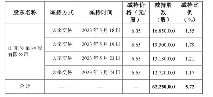根據(jù)羅欣藥業(yè)彼時(shí)披露的《簡式權(quán)益變動報(bào)告書》,在上述期間,羅欣控股通過證券交易系統(tǒng)以大宗交易方式減持6225萬股,共套現(xiàn)約4.04億元。