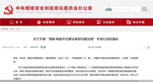 11月24日,中央網絡安全和信息化委員會辦公室秘書局等四部門聯(lián)合發(fā)布關于開展“清朗·網絡平臺算法典型問題治理”專項行動的通知,決定自即日起至2025年2月14日,開展對信息繭房、熱搜榜單、新就業(yè)形態(tài)勞動者權益、大數據“殺熟”等六個方面的算法治理。有關分析指出,隨著專項行動開展落實,將進一步維護用戶合法權益,提升用戶體驗和滿意度;促進網絡空間的健康、有序發(fā)展;以及推動技術創(chuàng)新與監(jiān)管并重,確保算法技術的健康發(fā)展。此外,接續(xù)性措施有望跟上,例如,第三方機構和成熟統(tǒng)一的評估標準可能在這次指導文件發(fā)布后逐步完善。這需要時間,也需要政府側配備相關人才等資源。
